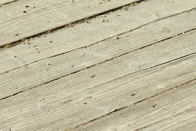 靴や風によって運ばれてきた土や砂が堆積します。放置するとウッドデッキの表面を傷つけることがあります。